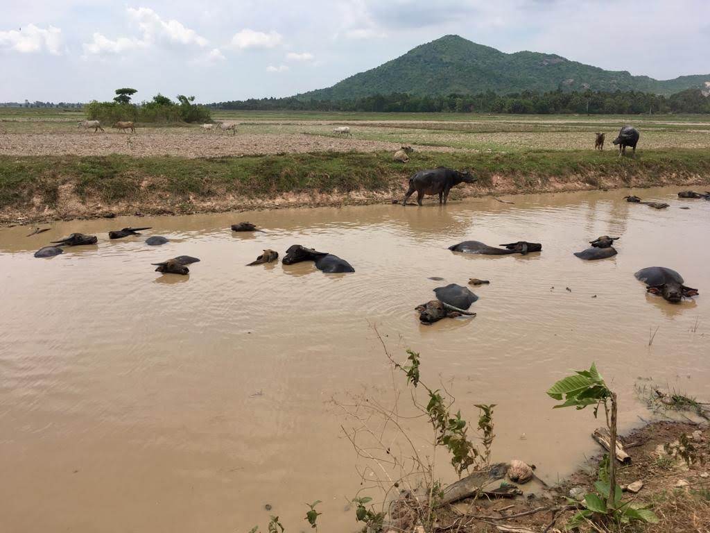 While the first day was filled with beautiful Khmer people, day two was filled with beautiful Khmer countryside. We did three ferry crossings, which was a complete blast since most of the “ferry” was just two boats with a couple of boards across the middle. It was definitely a new skill set for myself and Stef. We road true duck farms, fishing villages, and along floating villages. We stopped and visited with kids who told us they enjoyed “showering” over “swimming.” (Again, Khmer language cracks me up.) We saw a ton of water buffalo and we pushed ourselves hard. It was a really long day! I’ll admit it, I probably pushed myself a little too hard. I ran low on water. Was riding with my motorcycle boots rolled up to my knees to attempt to save my shins from heat rash. We did some pretty rocky terrain, which means my little 3/4 Honda Degree bottomed out more than a few times. We pushed through lunch so I was starving by the time we stopped a Kep Coffee for super late lunch and fellowship.