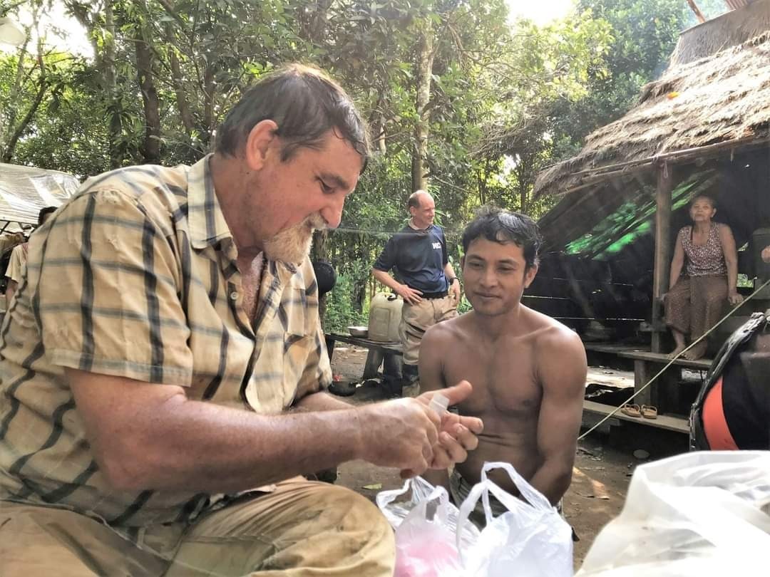 The father of this family was a very interesting man. He enjoyed being out away from everyone and he had learned that he could make a living from what he could harvest from the jungle. He told me that he was Vietcong and could speak Vietnamese and his wife was Khmer so they settled in that village on the border of Kampong Thom and Kratie. He had graduated from a University in Vietnam and we had a chance to talk for a bit. I talked about God and who he was and my new friend listened politely. Curtis had a solar micro-SD card player that had several Bible stories and other resources which the father gladly received. He is someone that would be great to follow-up with on future trips as he seemed open to talk about spiritual things
