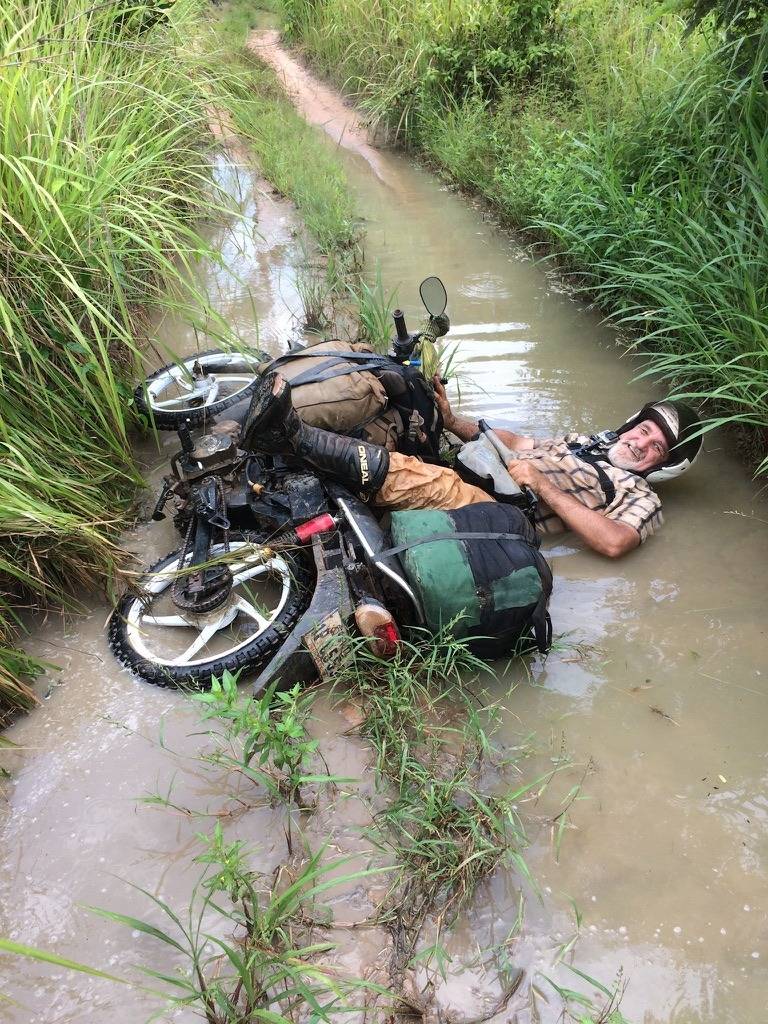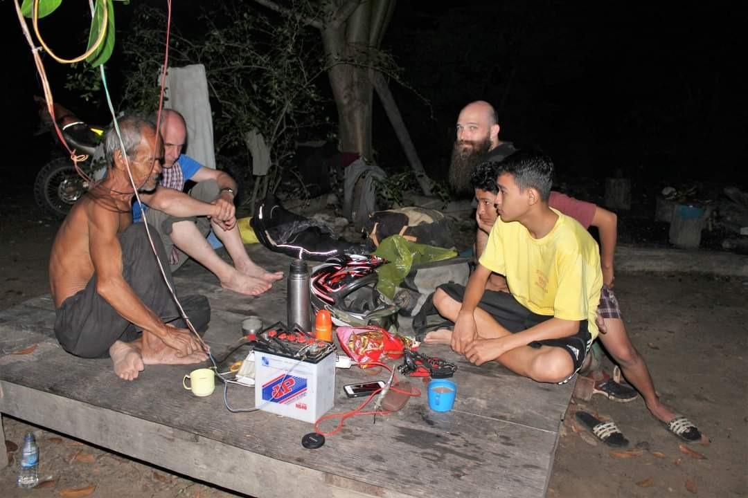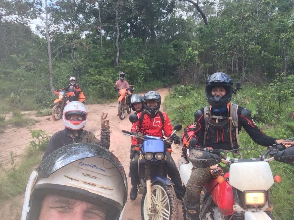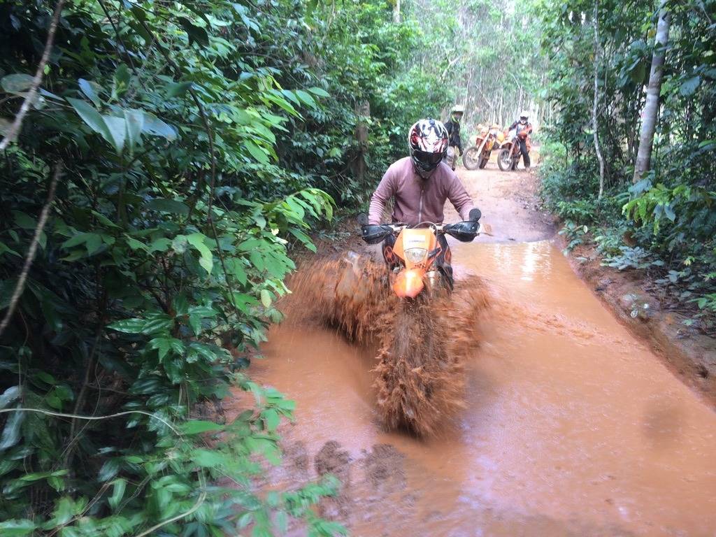 We still had a couple of more hours to make it to the village where we were planning to spend the night. We rolled into there about 8 pm in the dark and it had been raining on and oD throughout the day. All riders were wet with rain and sweat from towing, moto mud/water rescues and kicking bikes to keep them running to the next stop. The family in this village weren’t fully aware that our group would be there that night, but they did their best to accommodate with food and dry spots to sleep. When the food was finally ready, the two young men who were riding in the jungle for the first time, were so hungry that they each ate several full bowls of rice. There was not much chicken or vegetables for that meal but they got their fill of rice and seemed very happy and content to go to bed right after supper as we all were drained physically.
