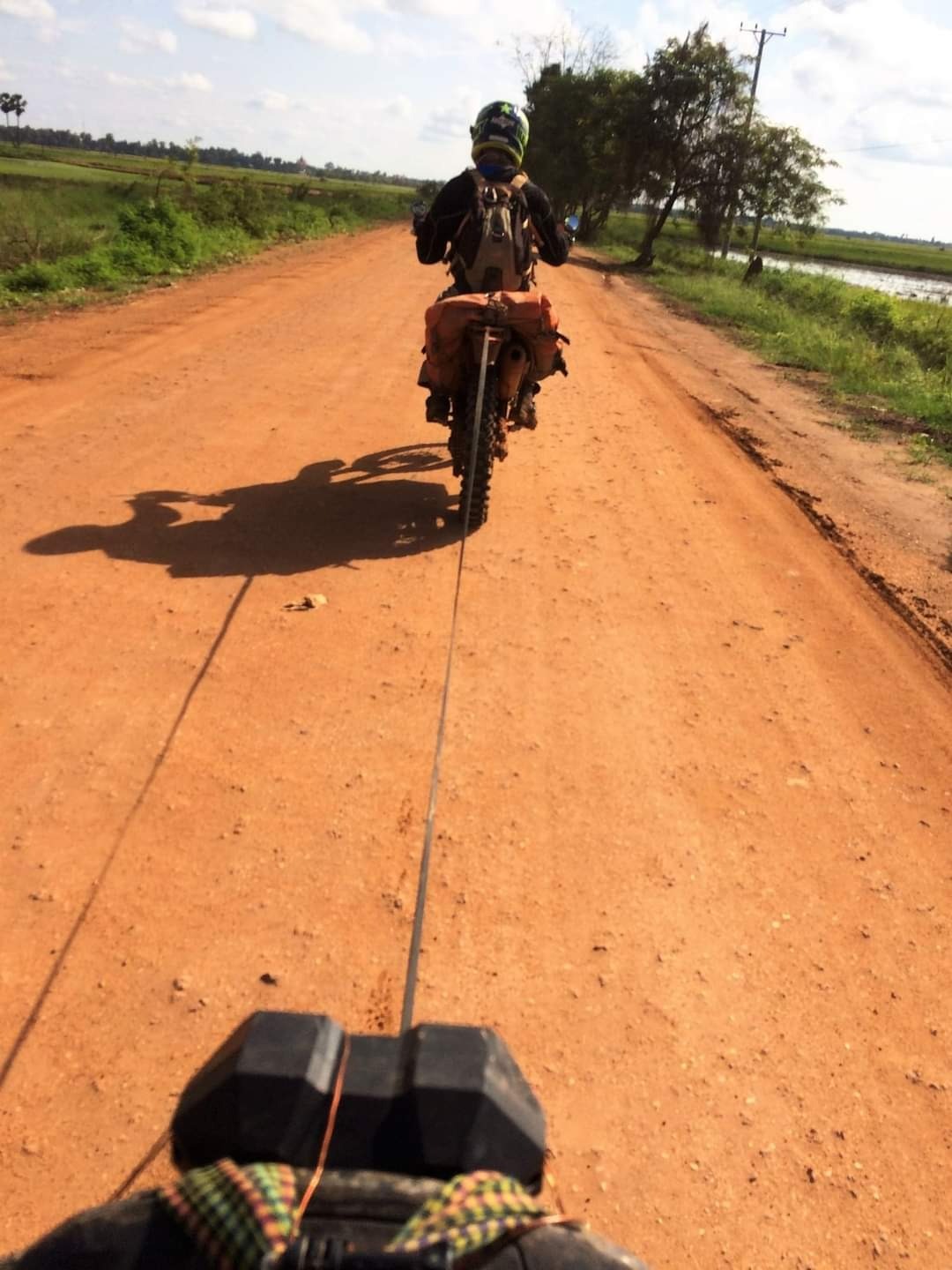 The ride out of the jungle was uneventful. We made it back to Kbal Domrai and got something to eat. Manoj and Adi had to take oD to make a meeting time and Mordecai was rushing away to catch a bus to Siem Reap. I left Kbal Domrai after these guys and as I was on my way to Kampong Thma I notice Mordecai is broken down on the side of the road. His bike had given out, so I hooked him up and gave one final tow to get his Daelim to the bus station 15 km down the road so that he could pack it on the bus to get it home to Siem Reap.