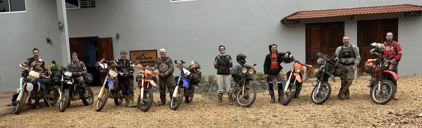 On January 31, 2025 the first group of riders gathered at the Sokimex gas station at the north end of Prek Pneau where they have a nice restaurant and fuel pumps on the Tonle Sap River. Dennis had left Kampot at around 5 am and arrived before the 8 am meeting time. Dave, Wendy, Yong, Scott and Luke joined from their Phnom Penh locations. It was mostly hard top road all the way to Stung Treng. We picked up Philip at the PTT gas station just north of Kratie and then Peter joined us later at The Hope Center where we spent the night in Stung Treng. So we were 8 riders by Friday evening and we went out to eat at a restaurant and then bunked for the night.