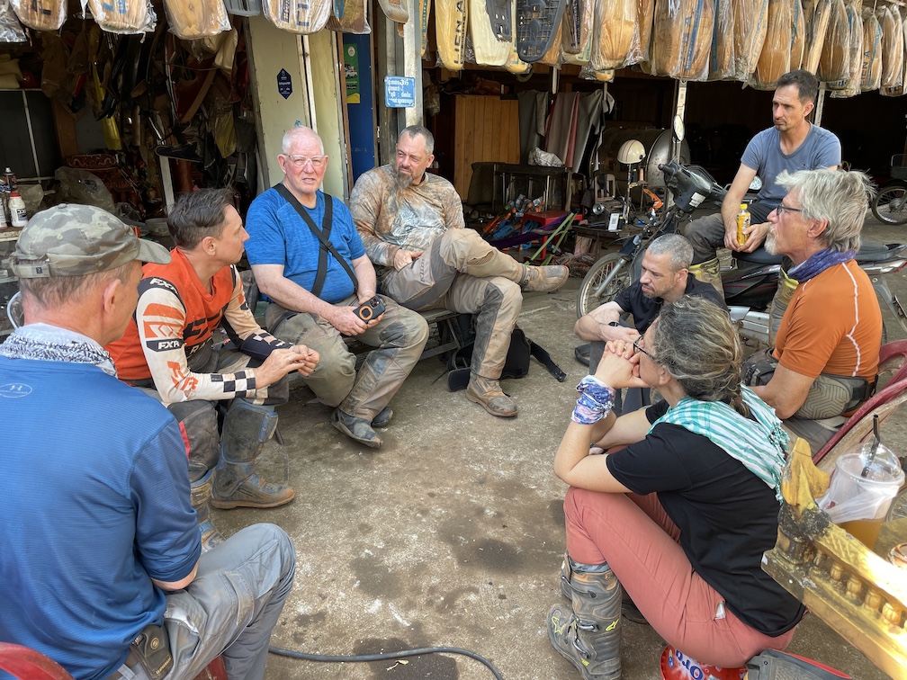 Earlier in the day, Philip’s bike had no power so they took off the silk covering from around the air filter and that seemed to restore some power.