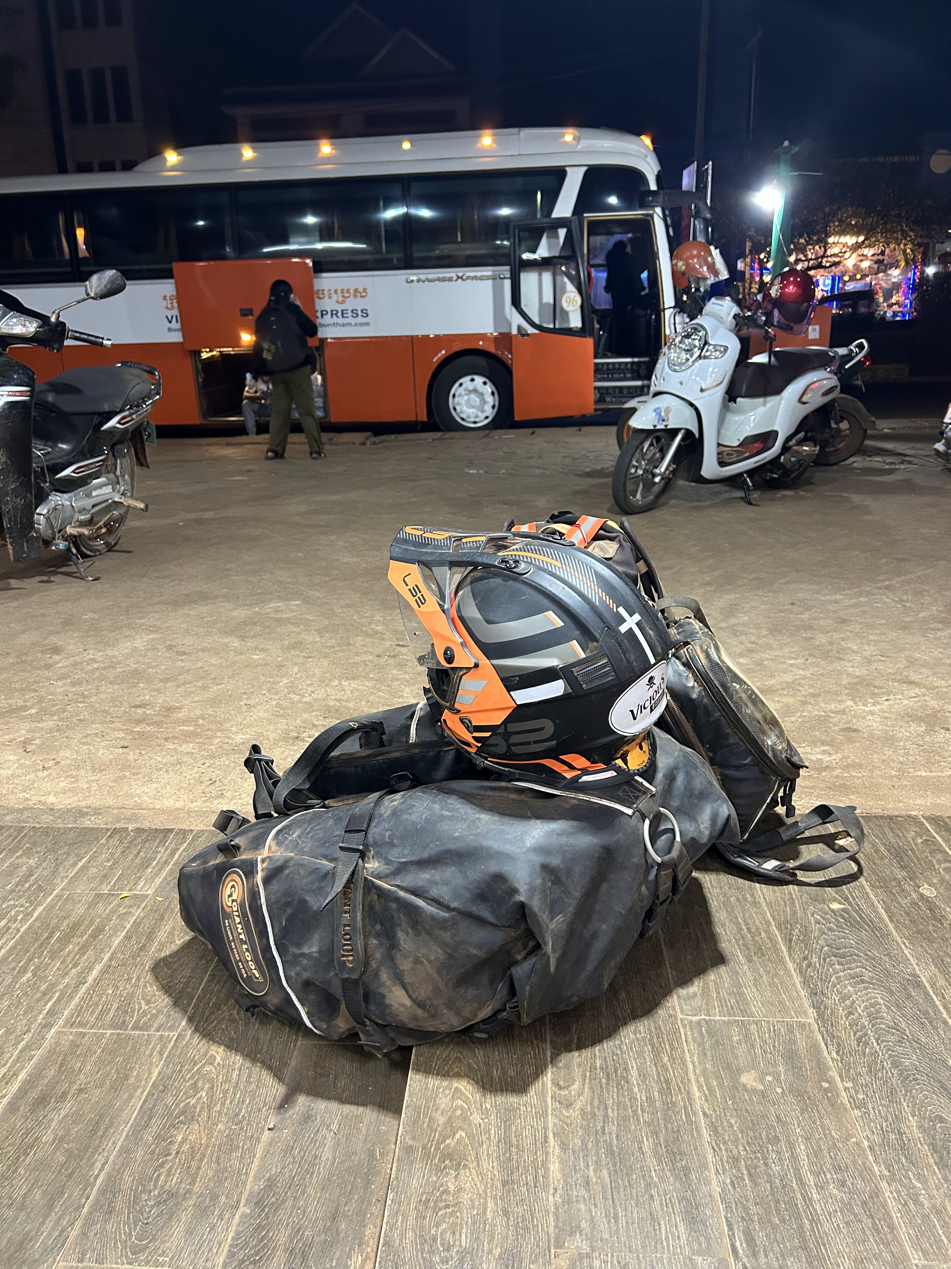 I decided to truck Wynona back to Sang’s for $30 and the moto shop made the arrangements to get it there. I took the night bus and paid for two spaces to have plenty of room and not have to share small space with someone else. That cost $28.