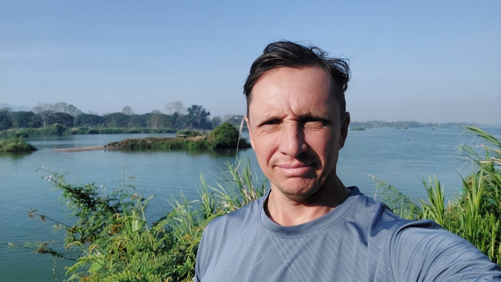 Dave then had a nail in his tire. While he was fixing that with Dennis, the rest of us hung out under the bamboo shaded bank by the river. A local young man came over to visit a bit and he had been to the church Philip Scott went to that morning. He said that he could not believe in God because of his family. We talked some more and I asked if he had any questions about God. He asked “Who came first, Jesus or Buddha?” We talked a bit about that.