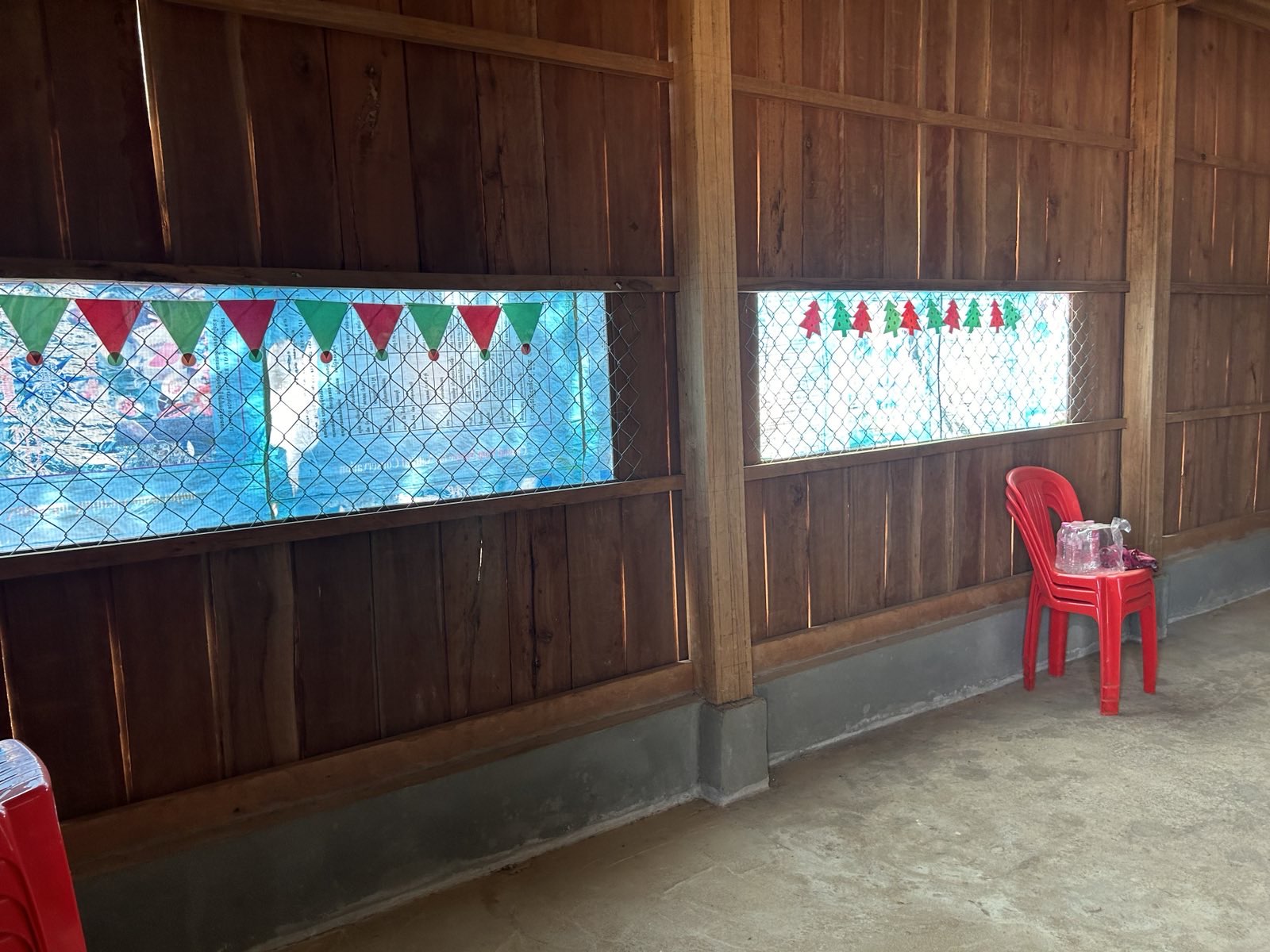 Next place was in Anlong Chrey district and I think the village was Veal Sakrom. The small wooden church had feed bags over the windows and it made it look like they had stained glass windows with the color variations in the bag. No one was around to visit with us, so we moved down the road and got some noodles.