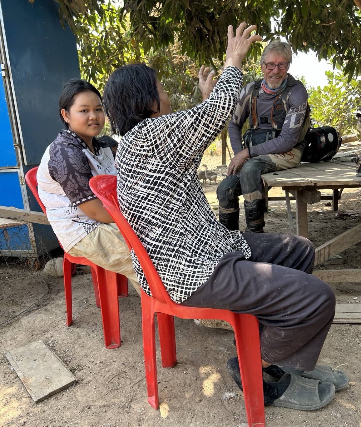 Regarding Kdaoy village, that is where we had our first drink stop and saw the steampunk phone network antenna. I first tried to find Kdaoy village in 2009 as part of a survey of Kraol people, coming from Kaoh Nheaek in mud in May. Our guide could not find the road and turned back to Kaoh Nheaek in the afternoon. We kept going looking for a turn from the main road, which we never found, and slept under a WWF house in the forest, where we were joined by a group of soldiers/lumberjacks. Anyway, we never made it to Kdaoy. When we got to a Kraol village on the Kratie side, West of Kdaoy, they said it was a 2-3 day ride in a buffalo cart. When we went on this PCC, I think it took less than 2 hours. So, in my mind, Kdaoy has always been a remote village. Now there is a car road coming to Kdaoy from Kaoh Nheak, though it is without bridges and eroded beyond what most cars would attempt, and the way we went on this ride, what I called “the highway” will probably be improved into a large graded dirt road with concrete bridges and powerlines along it, in the next three years. When I went through Kdaoy, and slept there one night, around 2018, with a group of Bunong and Kraol KEC believers from Kaoh Nheak, the village leader told the main KEC missionary that he was not allowed to teach the people. There were no believers in Kdaoy then. More recently, Jan 26 2025, a team of KEC outreachers on about 20 motorbikes from Mondul Kiri went through Kdaoy village, where they said they were allowed to speak the gospel, and though there are no believers, yet, a few people were interested.
